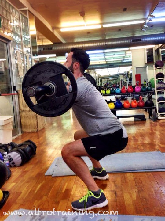 - 4 Front Squats @60/40 Kg. (135/90 lbs.)